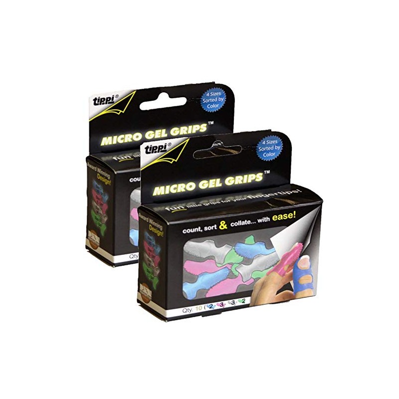 Sort, collate, organize papers with ease. Durable, flexible material with unique friction ridges which increase hand performance and reduce muscle stress. Latex- and Silicone- free. Breathable, sweat-free and comfortable for long term use. Open top works well with long fingernails. Order ring size for best fit. pack of 2