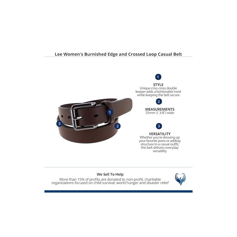 Elevate your casual wardrobe with the Lee Women's Casual Belt, designed with both form and function in mind. The 35mm width fits comfortably through most belt loops, while the beveled and burnished edges give it a soft, stylish finish. A modern gunmetal buckle pairs seamlessly with the criss-cross double keeper, adding a unique, fashionable accent. Whether you're dressing up your favorite jeans or adding structure to a casual outfit, this belt delivers everyday versatility with a polished touch.
