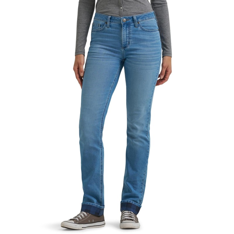 Lee Women's Legendary Mid Rise Straight Leg Jean, Frost Over-Plaid Fleece Lined