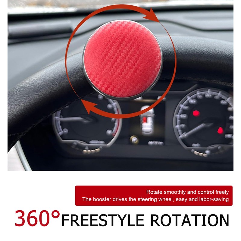 Leechio Car Steering Wheel Booster, ABS Carbon Fiber Bearing Spinner Knob, Auxiliary Power Saving Steering Accessory, Suitable for Most Cars, Trucks, SUVs (Red)
