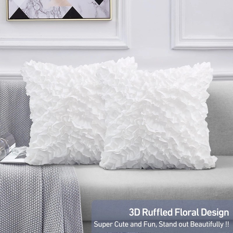 - UNIQUE 3D RUFFLE DESIGNOur decorative throw pillow covers have exquisite 3D ruffle patterns, they will make your home more elegant and decorate your room in a simple and fashionable way. These square pillowcases are suitable for bed, couch, sofa, car, office, balcony, patio, etc.