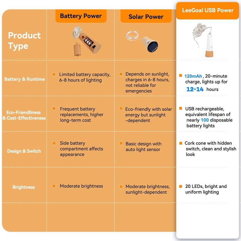 • Superior Battery Performance: Double the Capacity & Runtime.Featuring a 120mAh rechargeable battery, this USB bottle light offers 12-14 hours of continuous illumination—twice the runtime of standard USB bottle lights. Fully recharges in just 20-30 minutes, making it energy-efficient and convenient for long-lasting use