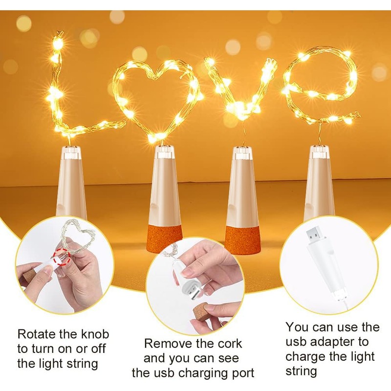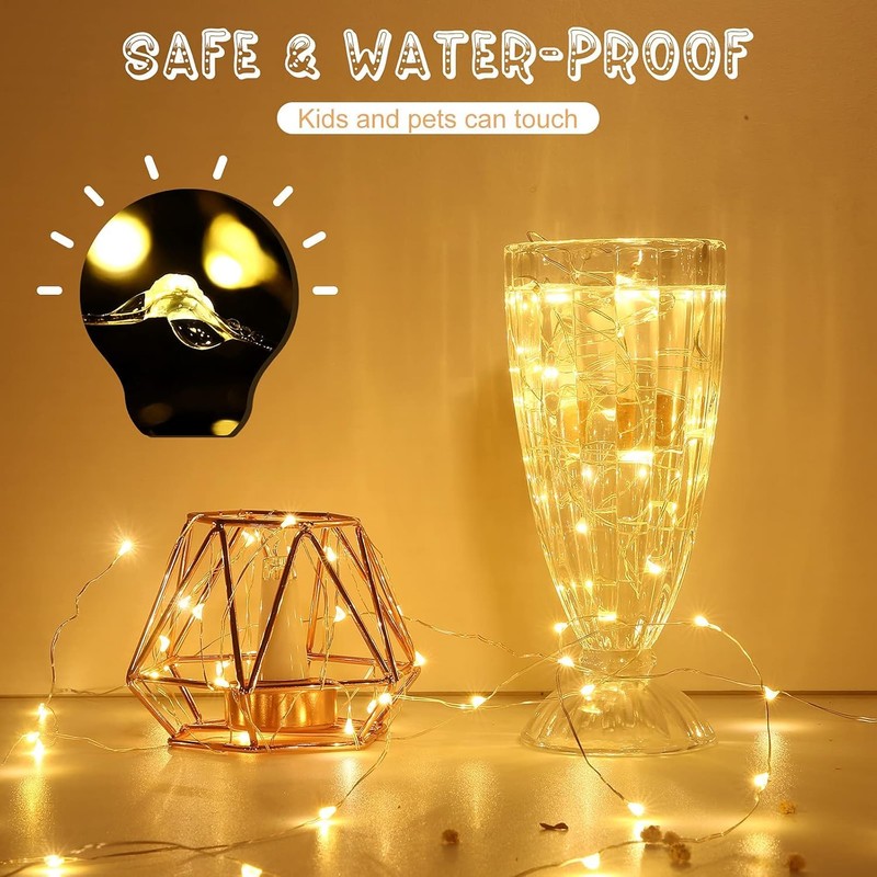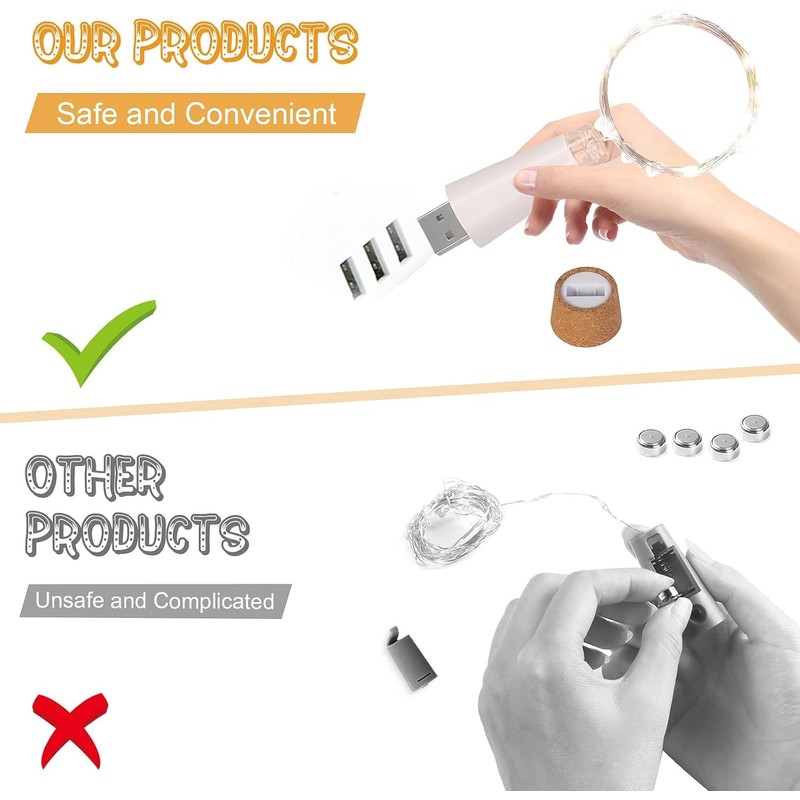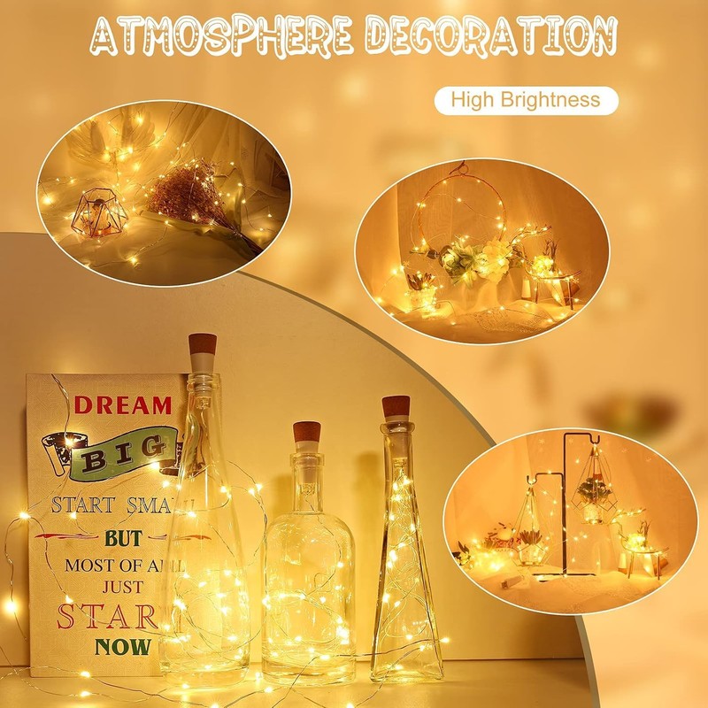 Bright & Waterproof LED Copper Wire Lights: Equipped with 20 premium waterproof LED beads on a durable 2-meter 0.38mm copper wire, this bottle light provides super bright illumination in warm, cool, and multicolor options. Perfect for creating a magical ambiance indoors or outdoors