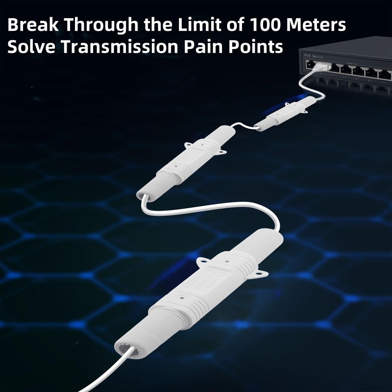 - ✅【250M Signal Extension】Waterproof PoE extender automatically recognizes the transmission rate, automatically expands to 100 meters or 250 meters depending on the end device, and is easy to extend to wireless access points, base stations, network cameras and other high-power devices via external network data lines.