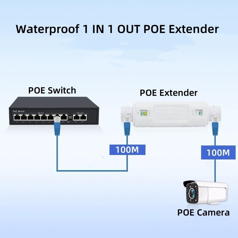 - ✅【100M Signal Transmission】Outdoor PoE repeater has a 10/100Mbps PoE input port (supporting only 48V international standard POE devices) and a 30W 10/100Mbps PoE output port. Comply with IEEE802.3at and IEEE802.3af standards.It can provide power and data signal transmission for devices in the network without the need for additional power cords, saving wiring costs.