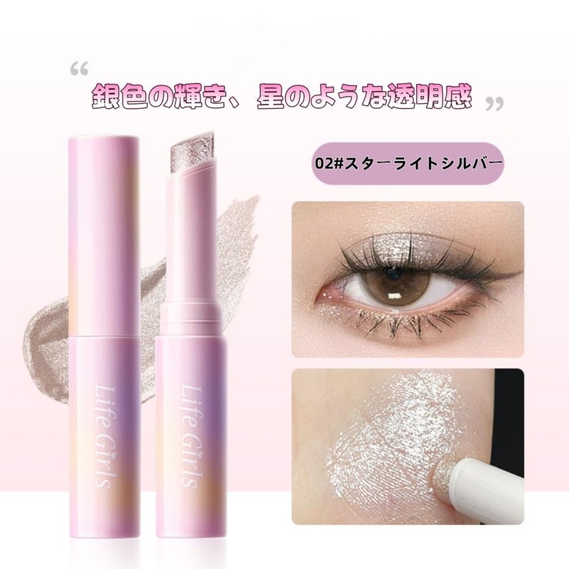 LEEINTO JELLY EYE SHADOW STICK, 6 Colors Eye Shadow Pen, Pearl Shiny Fine Glitter, Multi Color, One Touch Makeup, Long Lasting Eye Shadow Stick, Versatile Usage (02# Starlight Silver)