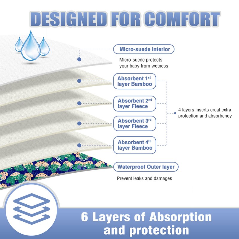- 6 Pcs Diapers & 4 Layer Design Insert: Washable diaper is divided into three layers, leak free outer layer, absorb insert and keep dry soft inner layer, help baby skin from moisture to keep dry and comfortable