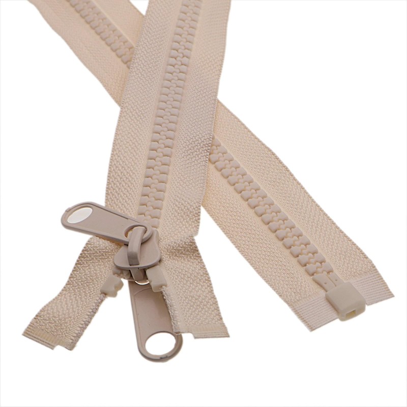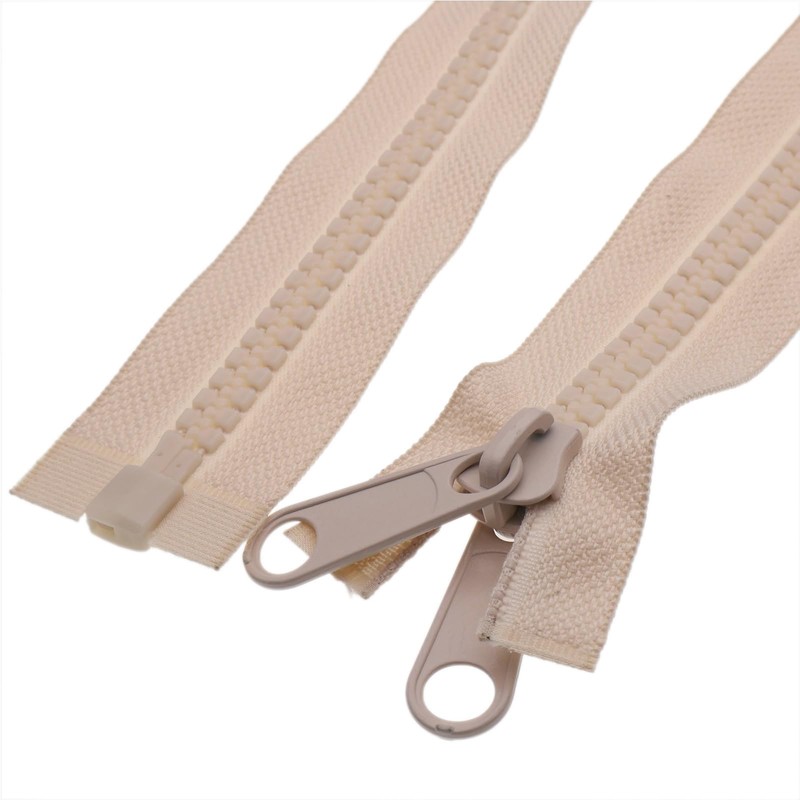 - #10 large Beige Heavy Duty plastic zippers with enameled metal double tab slider, it is openable from both sides