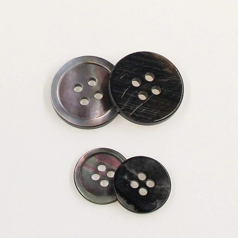 Genuine Natural Black Mother of Pearl (MOP) buttons are usually used for high end men's suits or blazers