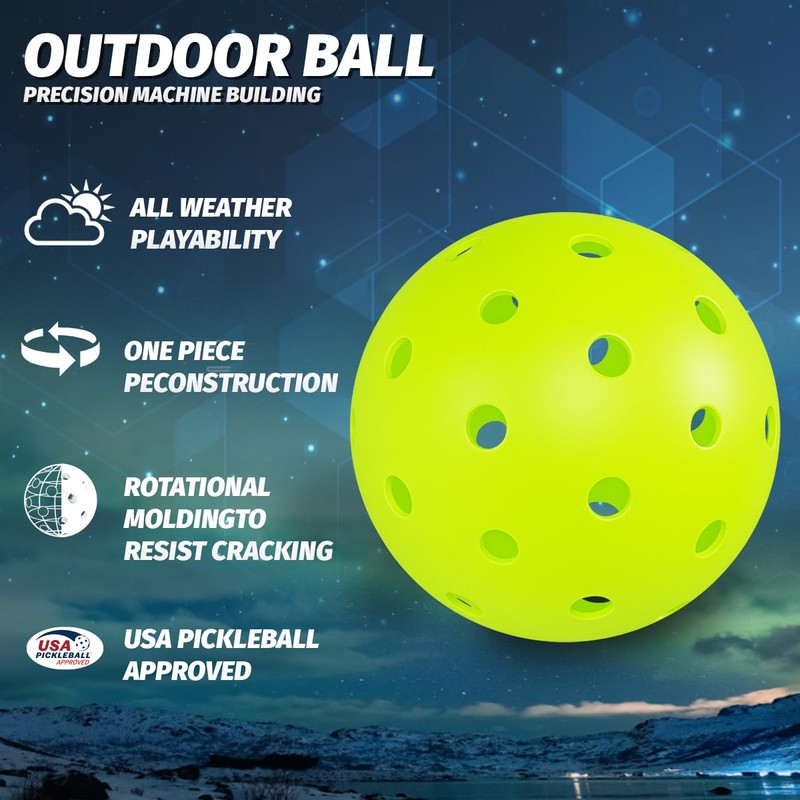 - Premium Quality Ball&Comfortable Grip:Pickle ball set is designed to be perforated, sweat absorbent, and cushioned,hight quality outdoor pickleball be used in tournaments. Grip can help users better grasp the grip and provide cushioning. 4.57" grip circumference allows enough room for maximum wrist snap for power and spin and range of motion in your wrist