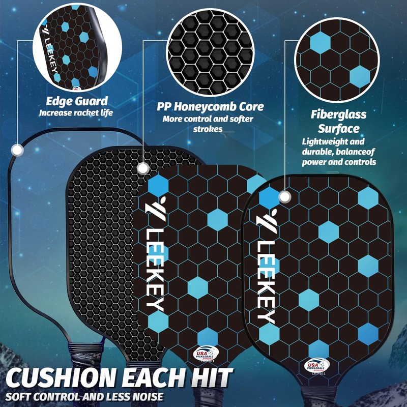 LEEKEY Pickleball Paddles Set of 2 - USAPA Approved Fiberglass Pickleball Racket, Racquet Made of Polypropylene Honeycomb Core,Lightweight Design Pickleball Paddles for Men Women Beginners
