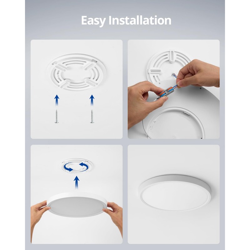 - 【Energy Efficient】The 24W round ceiling light provides 2186 lumens, equivalent to a 240W incandescent bulb, with a lifespan and reduces your electricity bill by 85%. High CRI (>80) allows you to see objects in more realistic and vivid colors, improving visual comfort. IP44 modern ceiling lamp meets the daily use of home as well as office lighting, suitable for most scenarios.