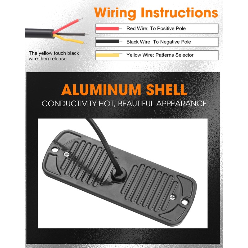 - Easy to Install: the emergency lights for vehicles are suitable for most cars and trucks with power connection of 12-24V; Red wire is to positive pole, black wire is to negative pole, and yellow wire are patterns selector (the yellow wire and red wire touch positive pole simultaneously, then release yellow wire can finish mode selection), you can install according to the operation instructions