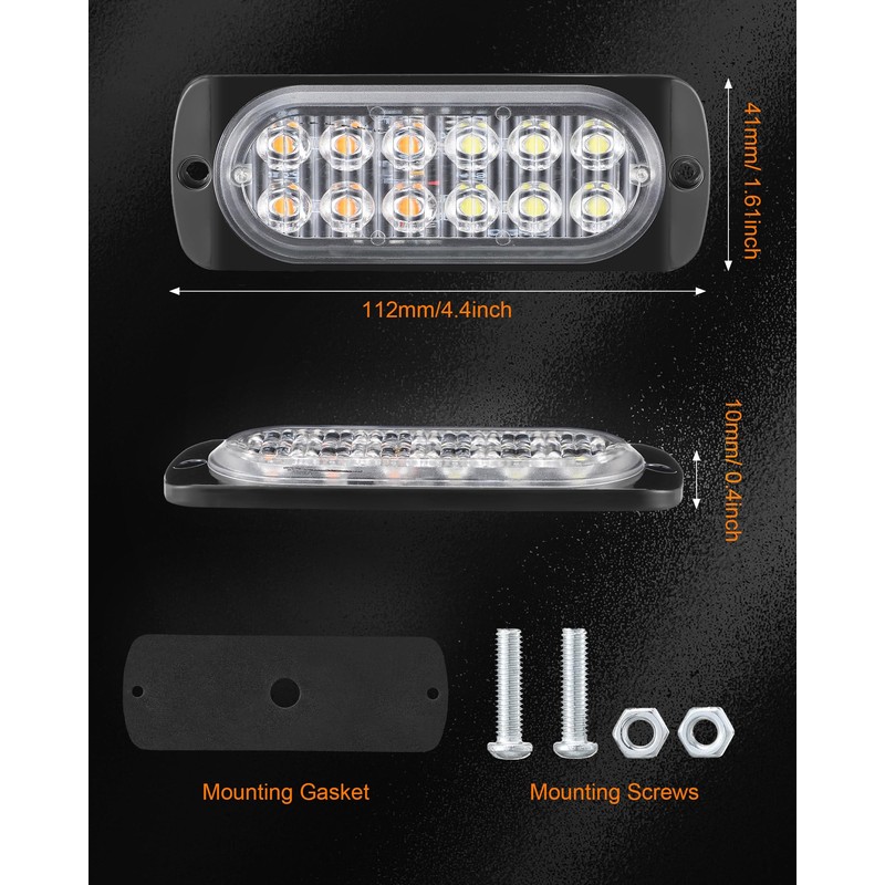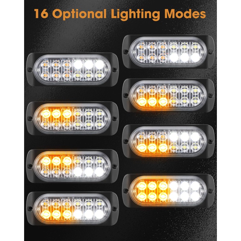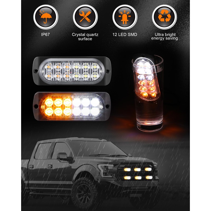 Leelosp 20 Pcs 12 LED Strobe Lights for Tow Trucks Construction Vehicles Surface Mount Emergency Hazard Beacon Safety Warning Lamps Flashing 12-24V Grille Head for Car Accessories (Amber and White)