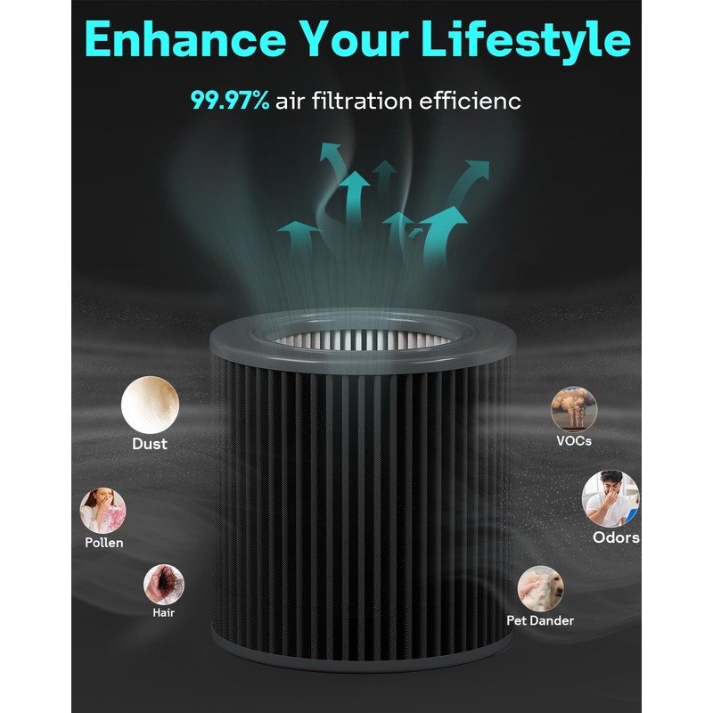 - 【3 STAGE HIGH EFFICIENCY TECHNOLOGY】: The first layer, a black non-woven fabric Pre-filter, tackles larger particles like dust, fur, and lint. The second layer is an activated carbon filter with a metal support frame, that attaches indoor odors for clean, fresh air. Lastly, a true HEPA filter captures smaller particles such as smoke, and pet dander, ensuring a more comfortable living environment. Our filter uses carbon powder made from FSC-certified charcoal powder