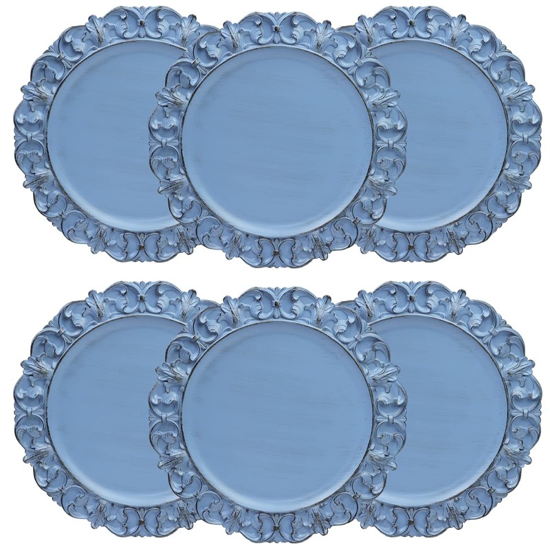 Leemxiiny 13" Antique Blue Charger Plates, Set of 6 Plastic Textured Chargers for Dinner Plates with Embossed Rim, Table Décor, Party, Wedding, Holiday