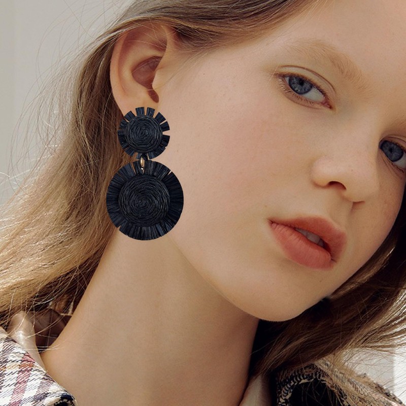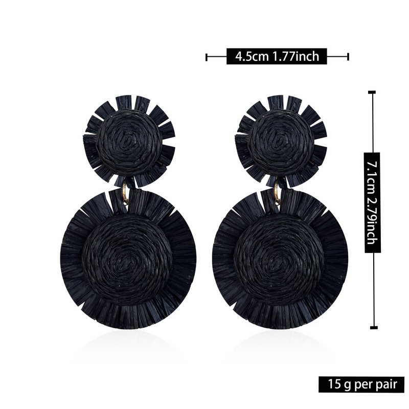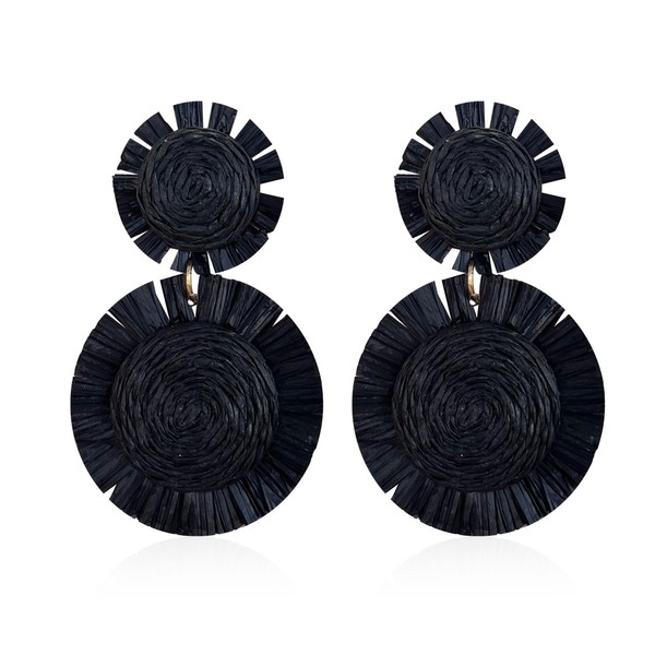 Leeniuniu Handmade Statement Raffia Earrings Boho Rattan Dangle Earrings Straw Wrap Summer for Women (Black)