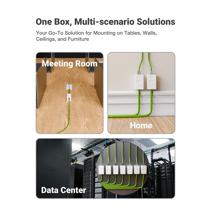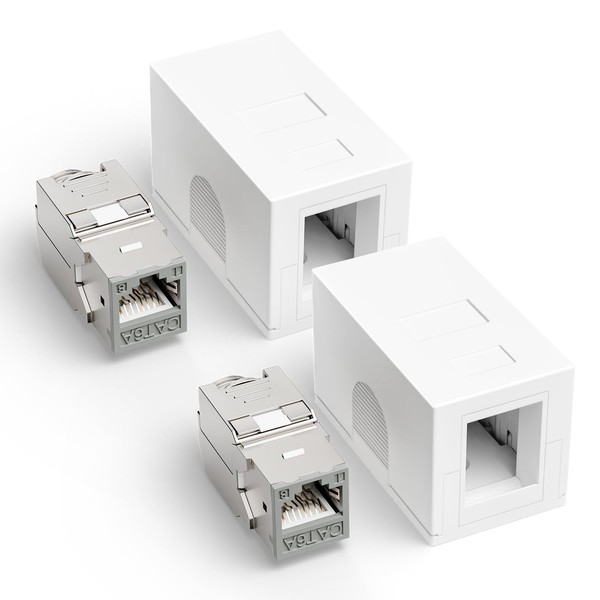 - COMPLETE PACKAGING: 2 x 1-Port surface mount box + 4 x screw + 2 x cable tie + 2 x double-stick tape + 2 x RJ45 Keystone Jack Cat6A, plus an 18-month warranty and friendly customer service
