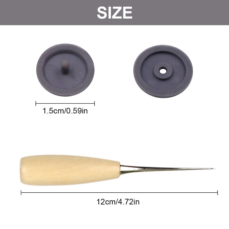 - ✔Scope of delivery: 15 sets of gray seat belt stop buttons (15 male and 15 female) and 1 wooden handle awl.