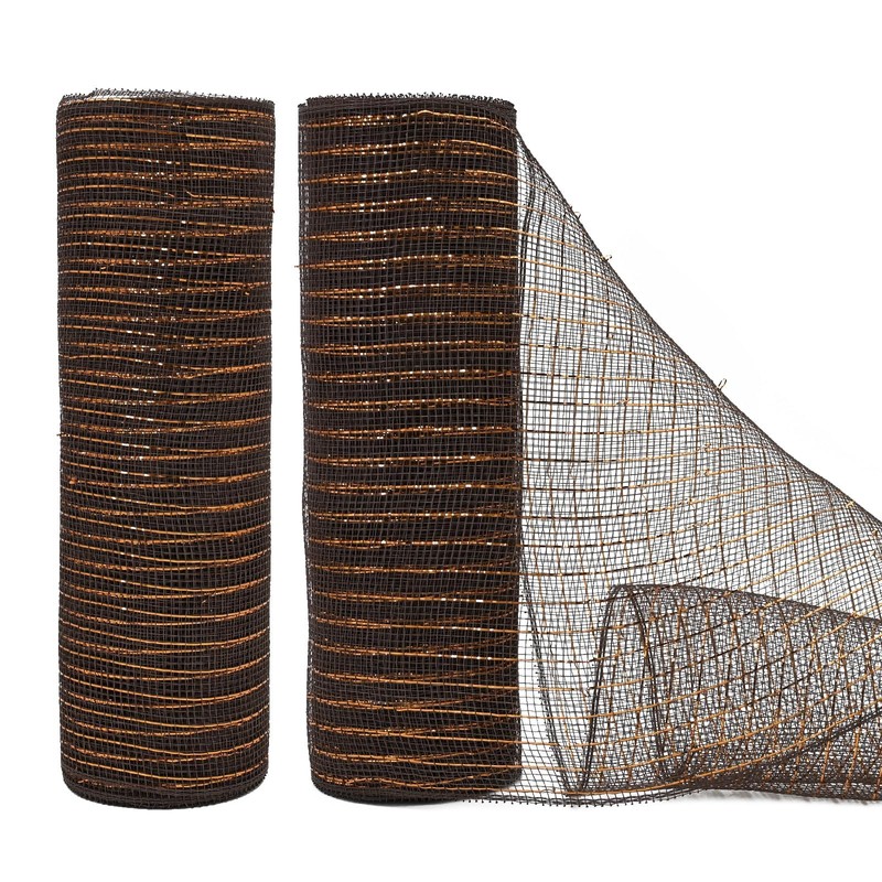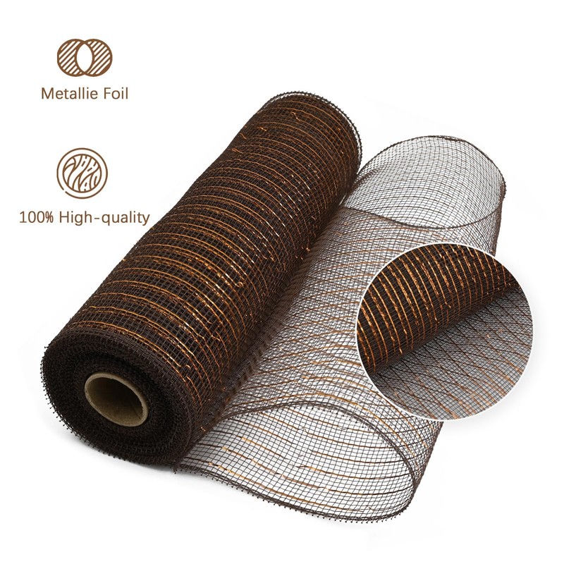 LEEQE Chocolate Brown Decor Mesh Ribbon For Easter Wreath Metallic Foil Mesh Ribbon For Home Decor Craft Spring Holiday Party 10 Inch 10 Yards(2 Rolls)