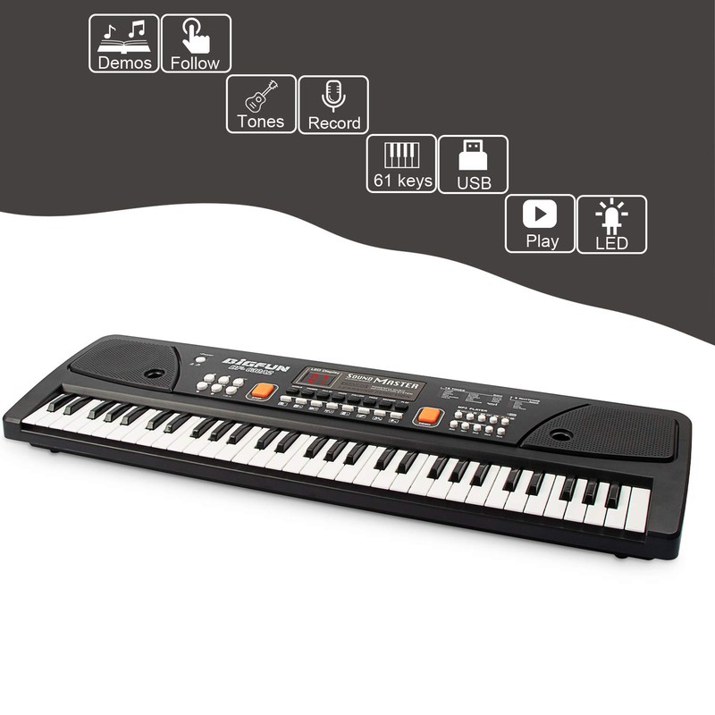 - 【VERSATILE 61 KEYS KIDS PIANO】 Versatile 61-Key Kids Piano: Discover endless musical possibilities with our 61-key kids piano, featuring 6 demonstration songs, 8 rhythms, 16 tones, 8 percussion sounds, 4 samba sounds, tempo control, volume control, record & playback function, sustain & vibrato function, one-key-one-note learning mode, and automatic sleep function. This comprehensive setup ensures hours of engaging and educational fun for your child.