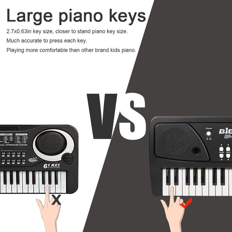 - 【MATERIAL & TRUSTWORTHY KEYPAD 】Our piano is crafted from secure, eco-friendly ABS material, known for its durability and safety. The sleek, rounded edges prevent any harm to your child, while the specially resized keys (2.7*0.63 inches) are perfectly suited for American children’s fingers, ensuring an easy and comfortable playing experience for little hands.