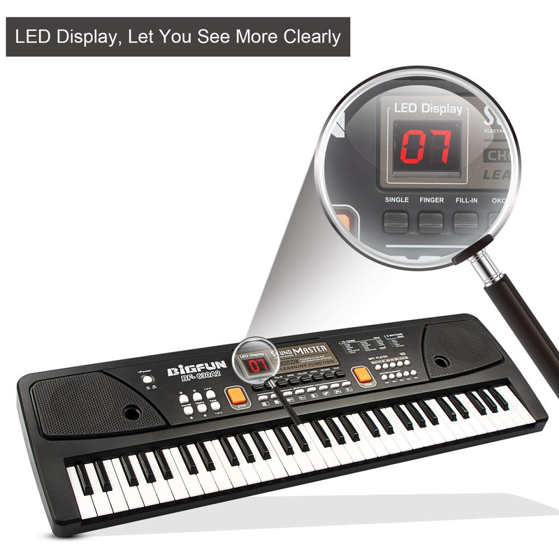 LeeQee Digital Keyboard Piano for Kids & Beginners, 61 Keys Multifunction Electric Piano Keyboard with Microphone, Educational Instrument Musical Toy for 3-12 Years Old Boys Girls (Black)