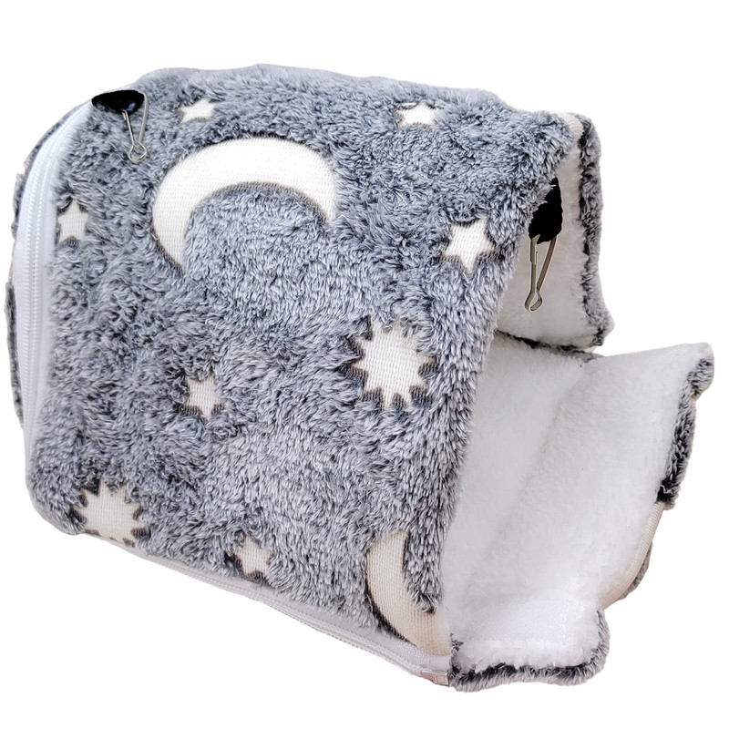 LeerKing Small Animals Cuddly Cave Guinea Pig Cuddly Bed Nest Plush House Hammock for Rat Hamster Rodent Ferret Bearded Dragon Degu Luminous Grey M