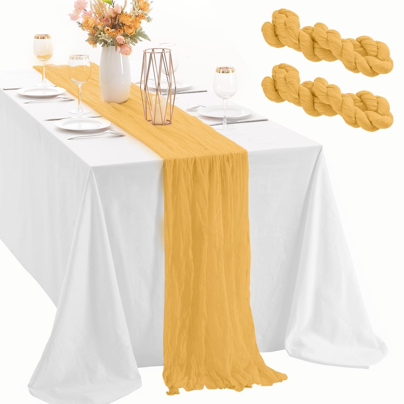 Leetaltree 2 Pack Yellow Cheese Cloth Table Runner, 35x120 Inch Boho Rustic Cheese Table Runner, Table Runners for Bridal Baby Shower Decorations or Wedding Table Decorations
