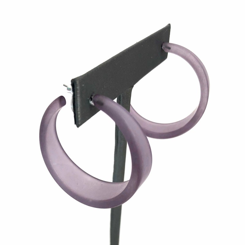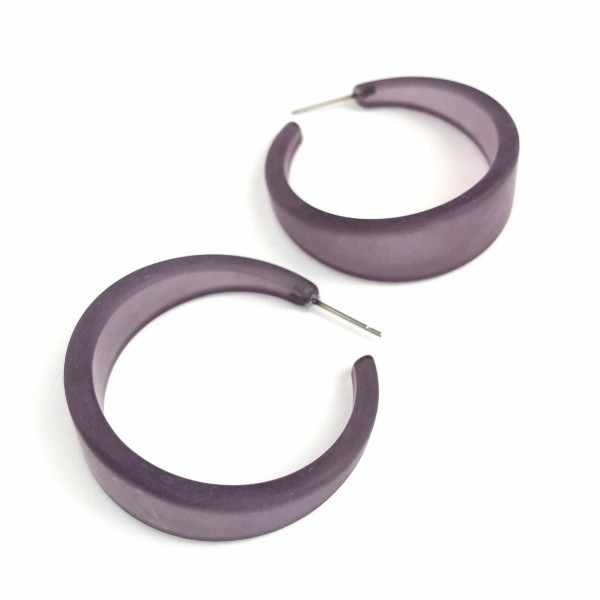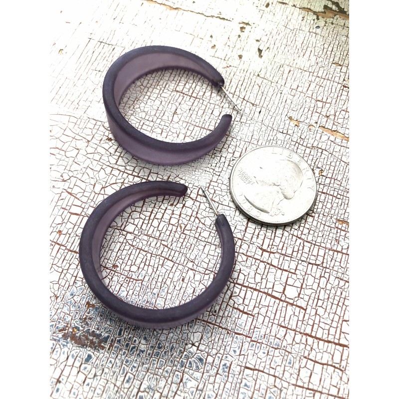 Charcoal grey hoop earrings made of vintage lucite in a frosted finish. The Emily Hoop is one of our most popular and largest styles. It's bold & lightweight, a great statement hoop earring. Each measures 1.5" in diameter and about 1/2" at the widest. This style comes in lots of other luscious colors. Be sure to check out the rest of the earrings in the shop for other color options in this same style.