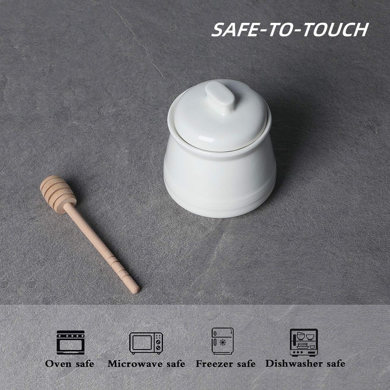 • 【Ceramic Jar】-This honey pot is made of ceramic and fired at 1200 ° C+. The surface is smooth and bright, and it is very easy to clean. It can be washed by hand or dishwasher.