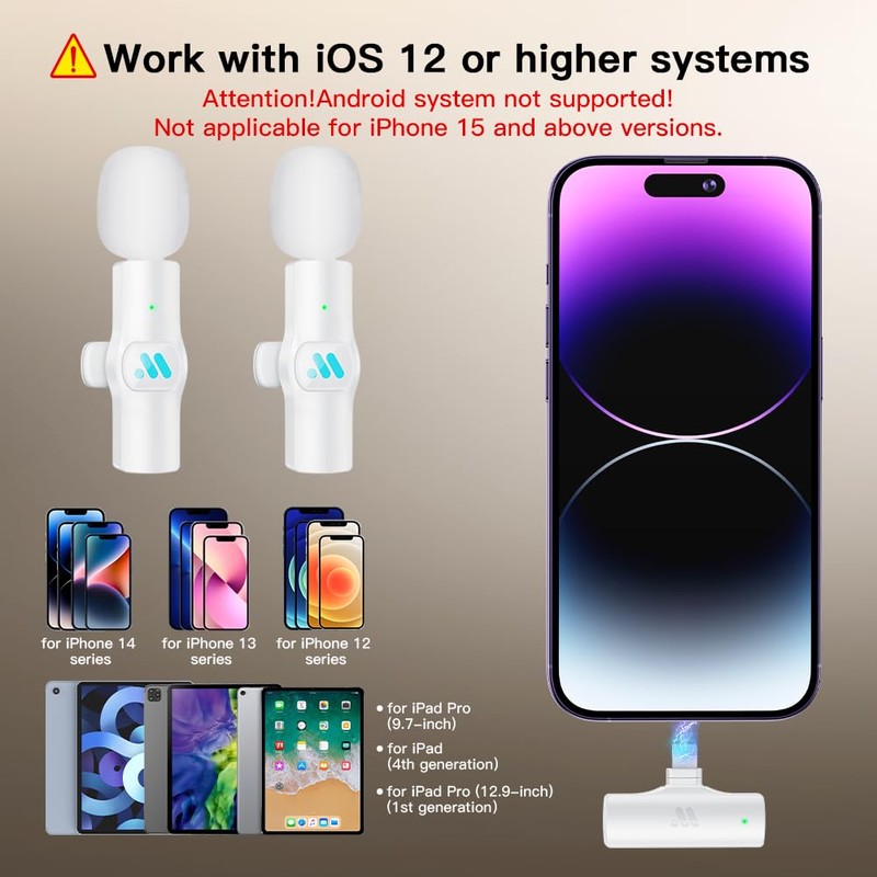 - WIRELESS DESIGN: Features wireless connectivity specifically optimized for iPhone 7-14 and iPad devices, enabling hassle-free recording without cables.