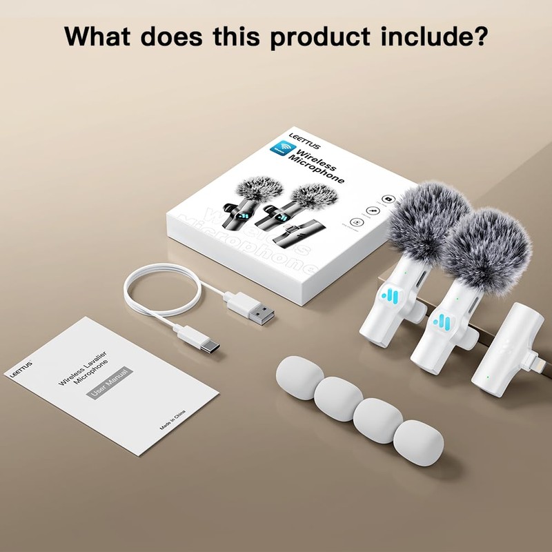 Leettus Leettus Lavalier Wireless Microphone for iPhone 7-14 iPad,mini Microphone for Game Live Streaming,Interviews,Video RecordingWhite