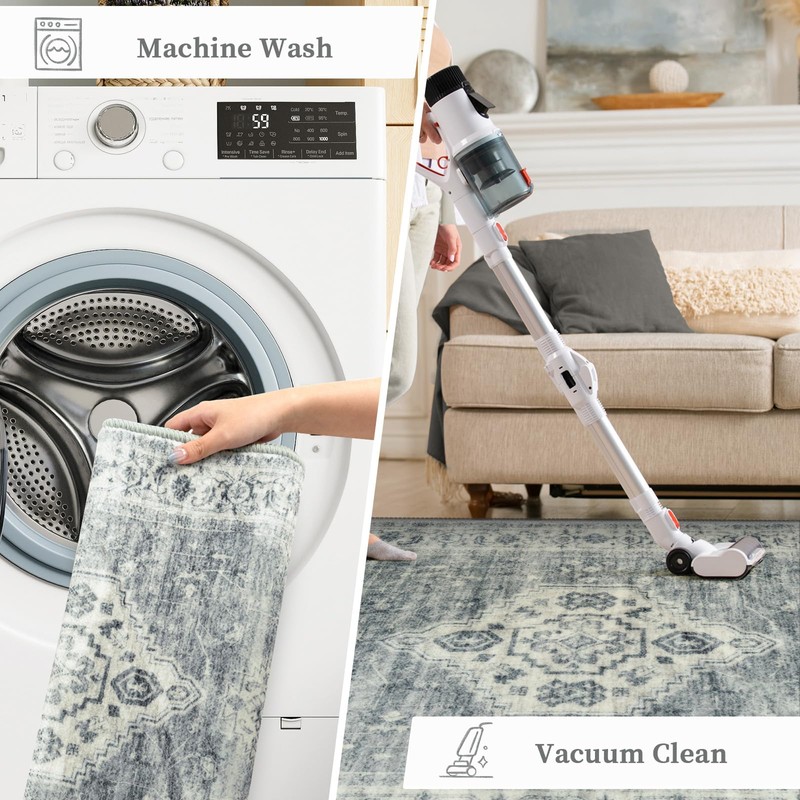 - Washable: LEEVAN Kitchen Floor Mat is a soft and shrink-resistant natural material that you can machine wash. We recommend washing on a cold, gentle cycle with a mild detergent and air drying to p shrinking. At the same time, regular vacuuming will help keep your washable rug looking new for longer and prevent dirt that is on the surface of the rug from getting embedded. Or just shake the rug to get the debris off or sweep it up