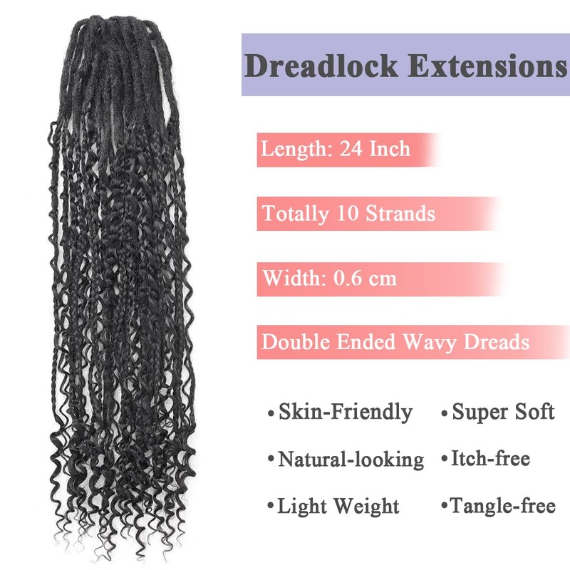 - 24 Inch Double Ended Boho Dreadlock Extensions, 100% High Quality Synthetic Fiber Soft Dreads, Feels Like Human Hair, Handmade by Professional Worker