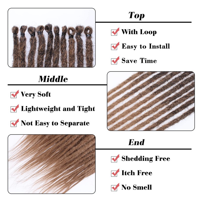 - 【Material】100% handmade high quality synthetic fiber dreadlock extensions, 0.6 cm wide, easy to install. Looks like human hair.