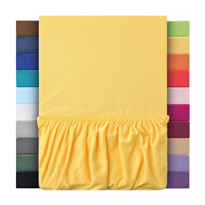 leevitex® Premium Children's Fitted Sheet, Set of 1, for Baby Cot and Cot, 70 x 140 cm, 100% High-Quality Mako Jersey Cotton, 170 g/m², Oeko-Tex Tested, Yellow