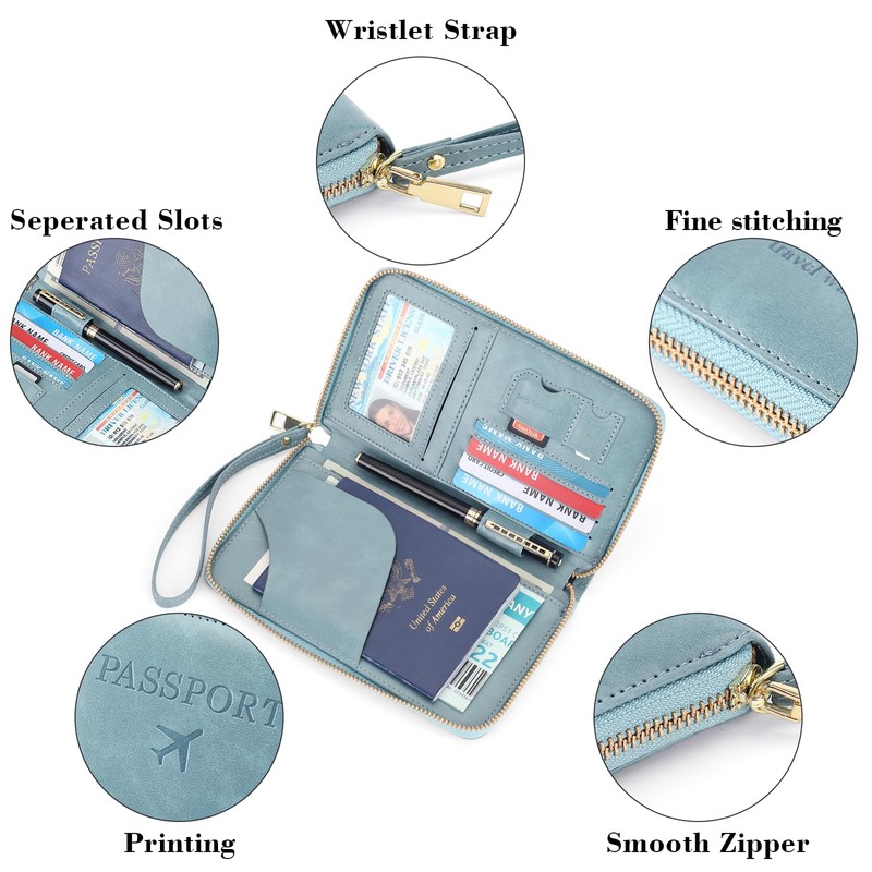 - High Quality Material: The clutch passport wallet is made of high quality leather,with soft texture and exquisite workmanship. Designed with shiny golden hardware,heavy duty zipper and quanlity fabric Lining.
