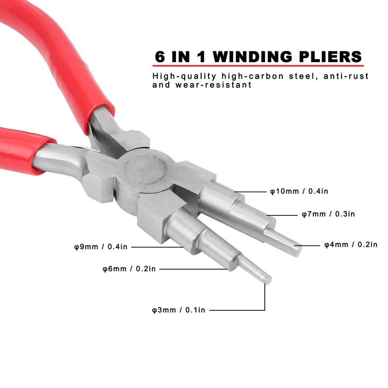 - Six sizes: 6-piece jewellery pliers with graduated round jaw on the nose, available in six sizes, suitable for making spools with different wires, C rings, ear hooks, etc., commonly used in jewellery, hair clips and other crafts.