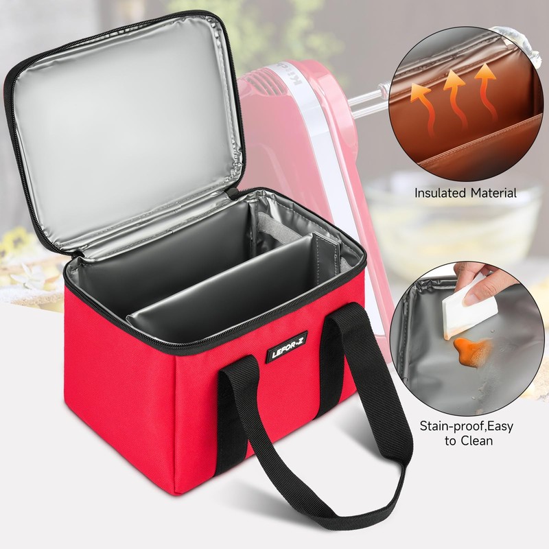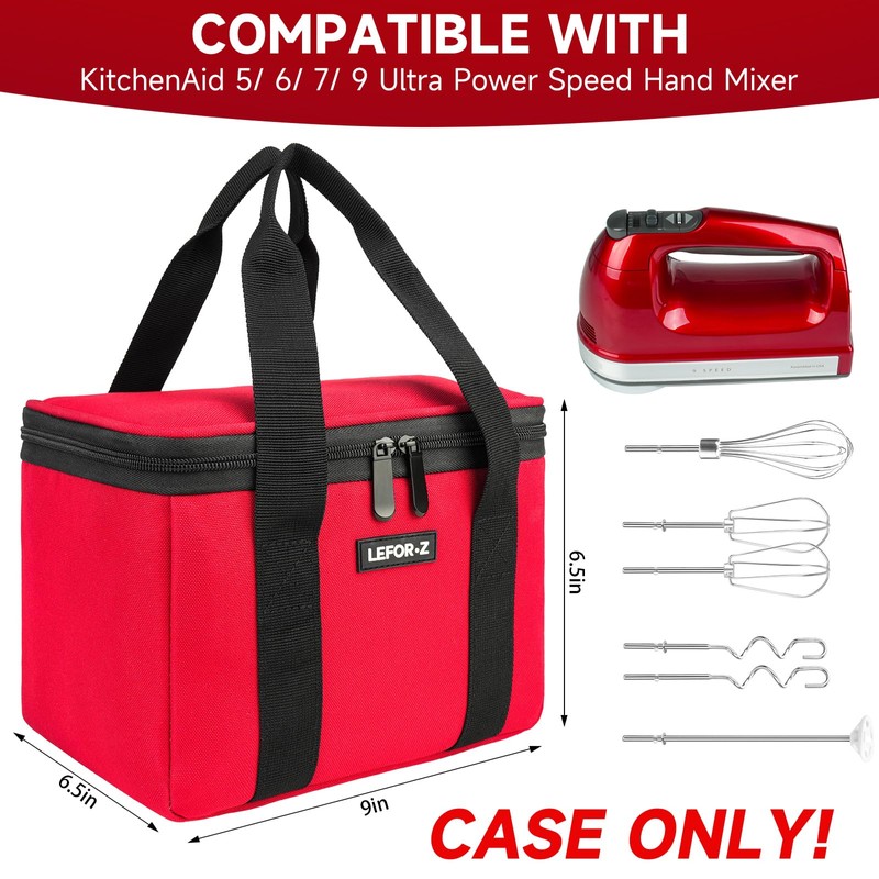 LEFOR·Z Hand Mixer Carrying Bag Compatible with KitchenAid 5/6/7/9 Ultra Power Speed Hand Mixers,Portable Travel Storage Case Bag Fits for Kitchen Aid Mixer Accessories,Red(Bag Only)