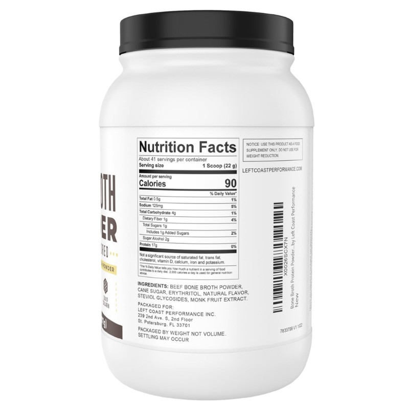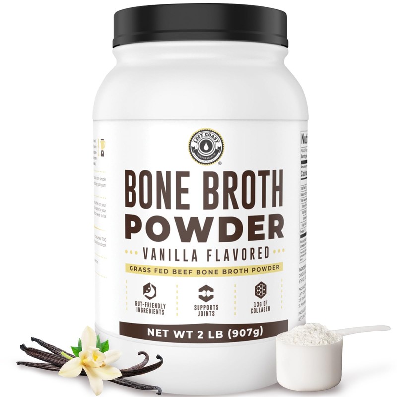 Left Coast Performance 32oz Vanilla Bone Broth Protein Powder From Grass Fed Beef - Non-GMO Ingredients, Gut-Friendly, Low Carb Dairy Free Protein Powder - Natural Collagen Source For Joint Support - Keto Friendly