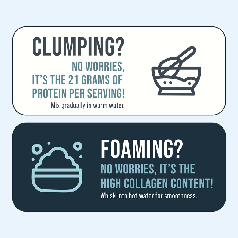 - How To Blend: For best results, the product should be blended on a low setting to avoid foaming. Add the powder after all other ingredients are combined, and blend on "low". Alternatively, whisk directly into hot water. Our single-ingredient, high-protein grass-fed bone broth powder delivers a subtle, natural beef flavor that's both clean and versatile. With zero fillers, sweeteners, or artificial ingredients, it's perfect as a savory soup base or seamlessly blends into coffee, smoothies, and more.