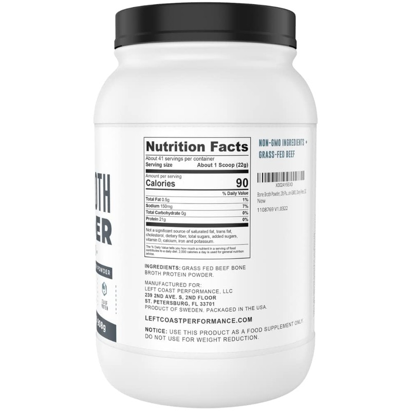 - Left Coast Performance: Each product undergoes thorough testing for consistency. We only deliver premium, nutritious bone broth protein powder. It comes in a food-grade PET plastic container free from BPAs. manufactured at a GMP facility. We stand apart from other companies by ensuring that each batch is created using a low-heat, time consuming process.