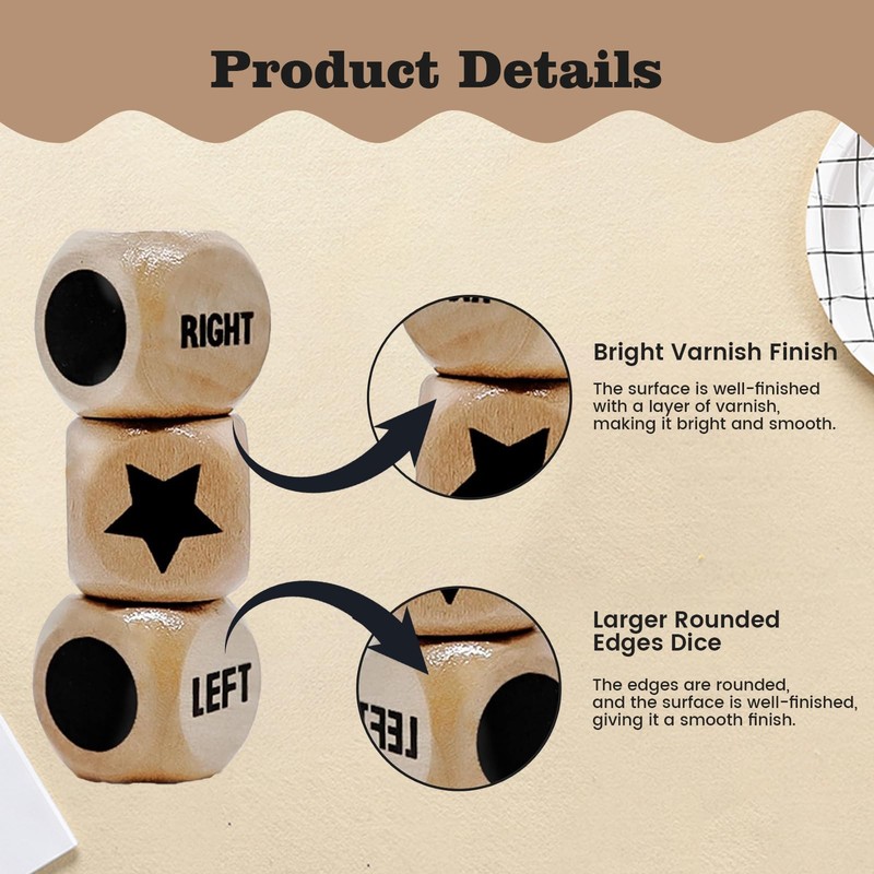 - Quality Craftsmanship: Each Left Right Center dice is 16 mm (0.63 inches) in size and is made of high-quality wood with a smooth surface, durable and exquisite, providing a good hand feel, perfect for Left Right Center Game and Left Center Right Dice Game.