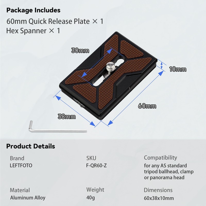 当社のクイックリリースプレートで完璧なショットを手間のかからずに手に入れましょう。 RRS、ARCA-SWISSなどの主要ブランドとユニバーサル互換性があり、AS標準の三脚ボールヘッド、クランプ、パノラマヘッドで動作します。 スタジオのプロやアウトドア撮影愛好家に最適です。