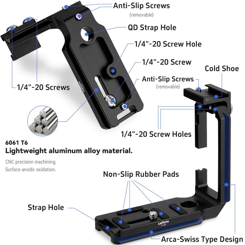 • 【Stable and Protective】- The L bracket holder made out with aviation aluminum alloy with highly-precise CNC technique;Each side of the camera L bracket is equipped with an anti-slip screw to increase stability. Rubber pads are added on the bracket to protect the camera surface from scratch and abrasionmovable