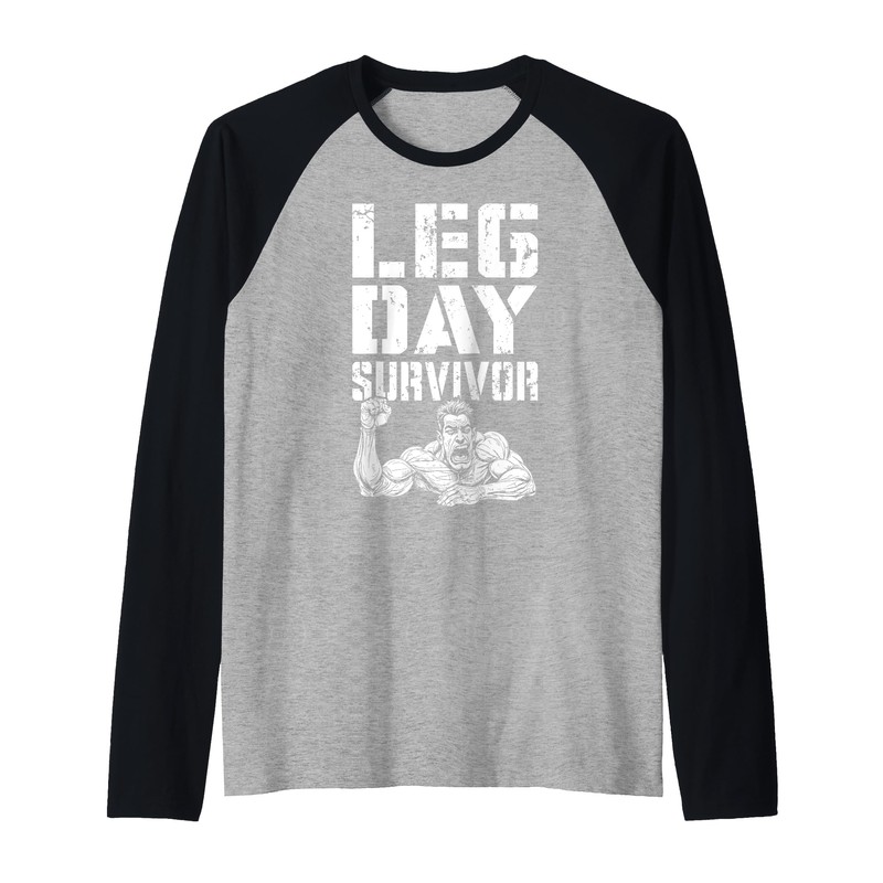 Leg Day Survivor Funny Bodybuilder Gym Squat Training Muscle Raglan Baseball Tee