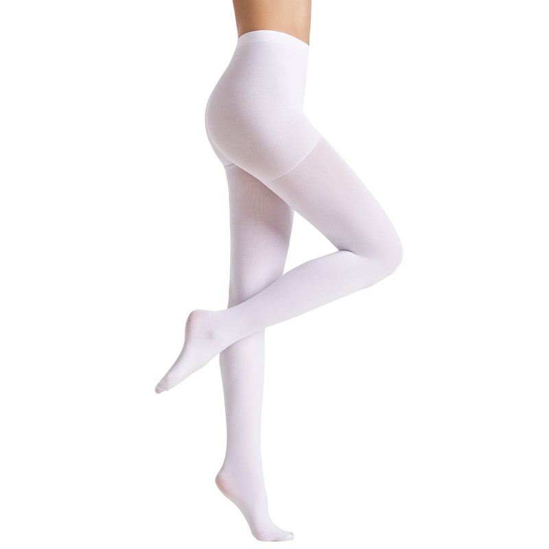 leg elegant Women's 80 Den Microfiber Soft Opaque Tights Pantyhose (White, S/M)