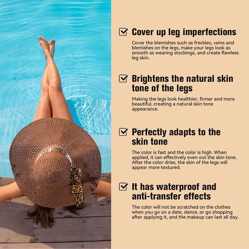 2. Apply an appropriate amount of this product evenly on the skin of the legs or other skin on the body that needs makeup.