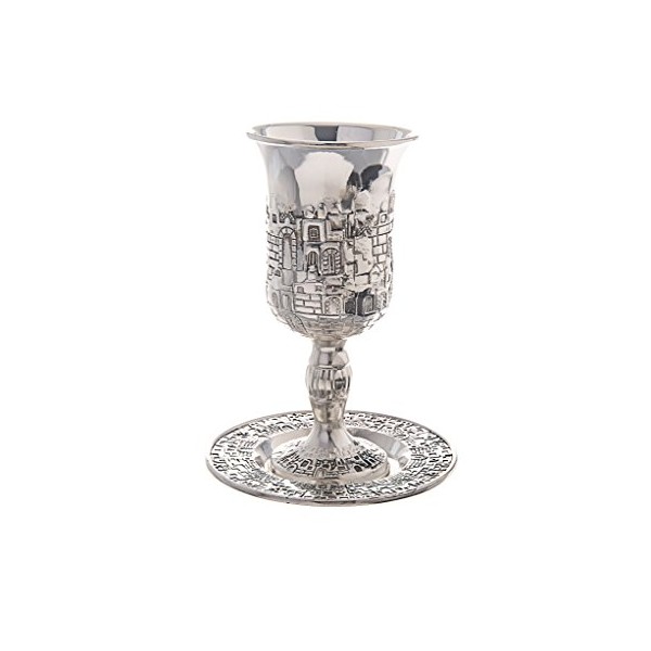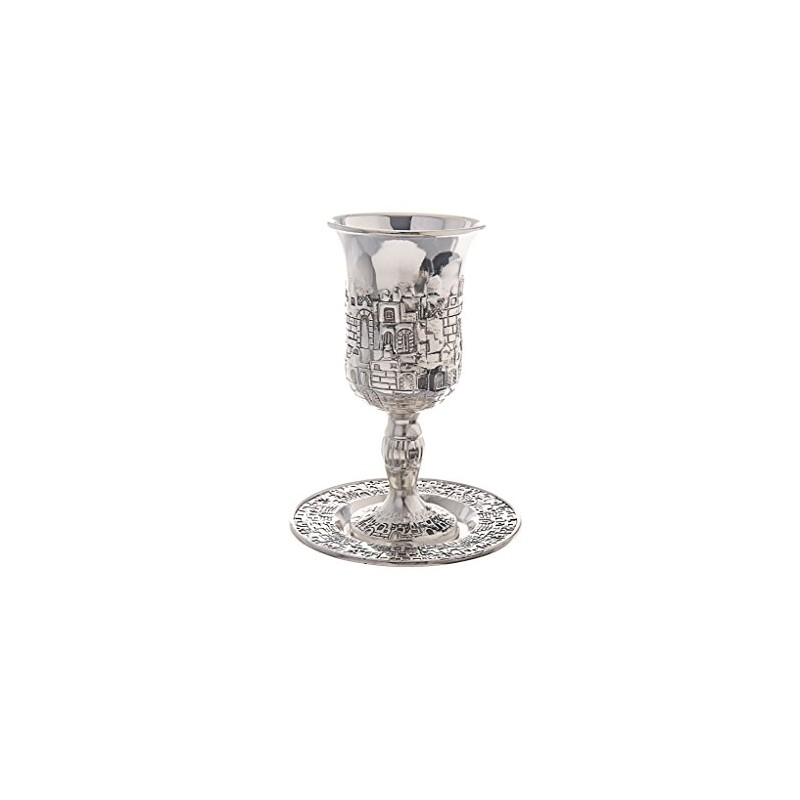 Silver Plated Jerusalem Kiddush Cup - Optional Personalization (Not Personalized)
